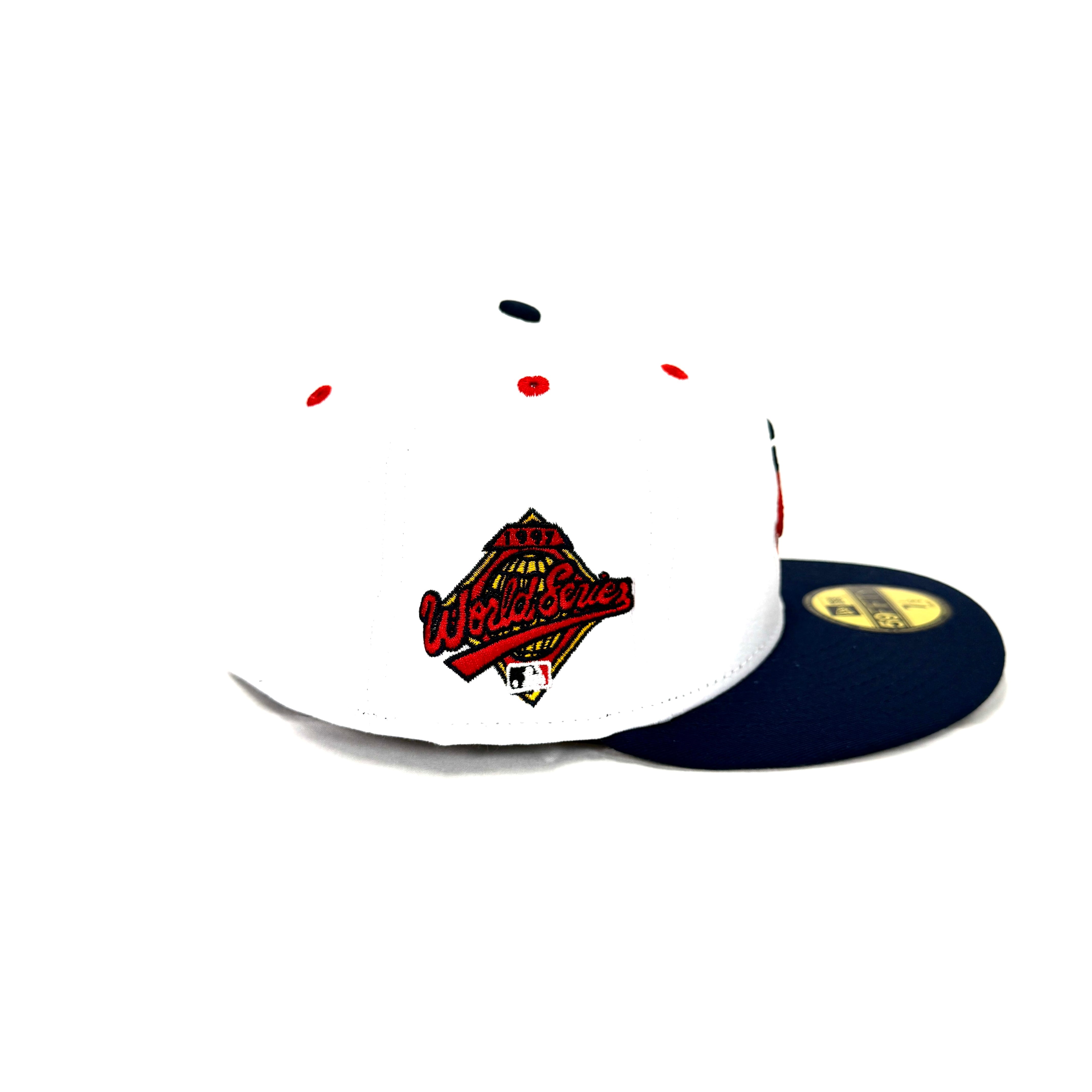Cotton White Blue Chief Wahoo Banned Cleveland Indians Guardians 1997 World Series New Era Fitted Hat Cap Rare